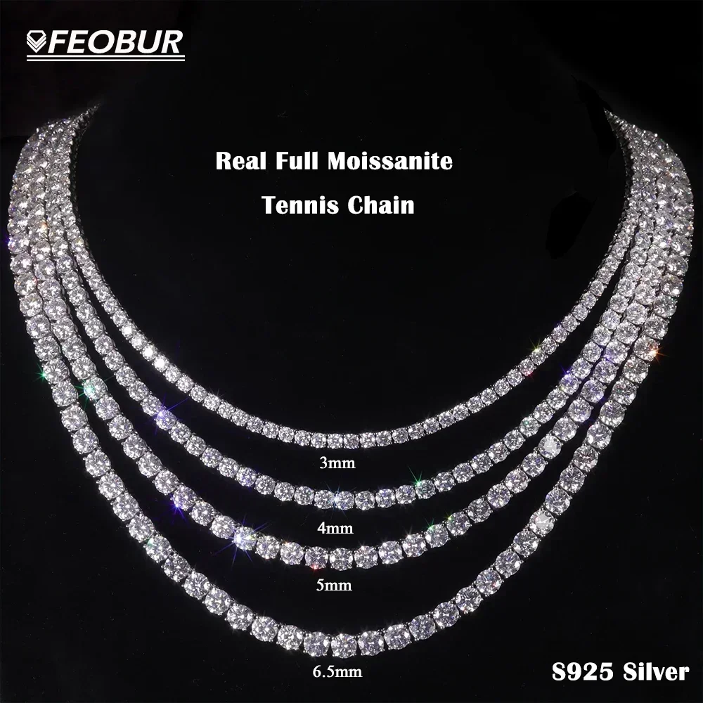 FEOBUR 3/4/5mm Real Moissanite Tennis Necklace for Women Men S925 Silver Certified Full Diamond Neck Chains Trendy Jewelry Gift