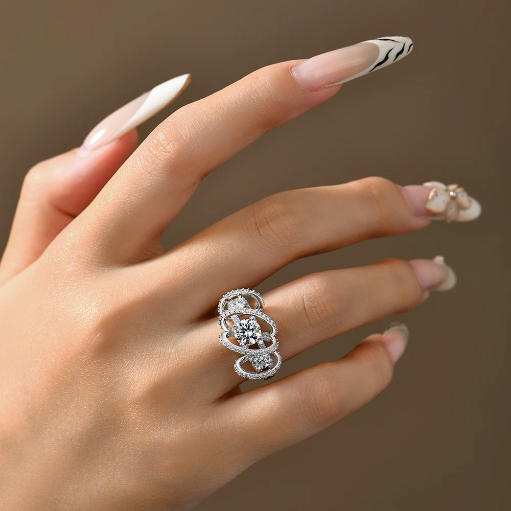 ATTAGEMS Three-Stone Cluster Moissanite Ring for Women 1CT Round Cut 100% 925 Sterling Silver Twist Band Engagement Fine Jewelry