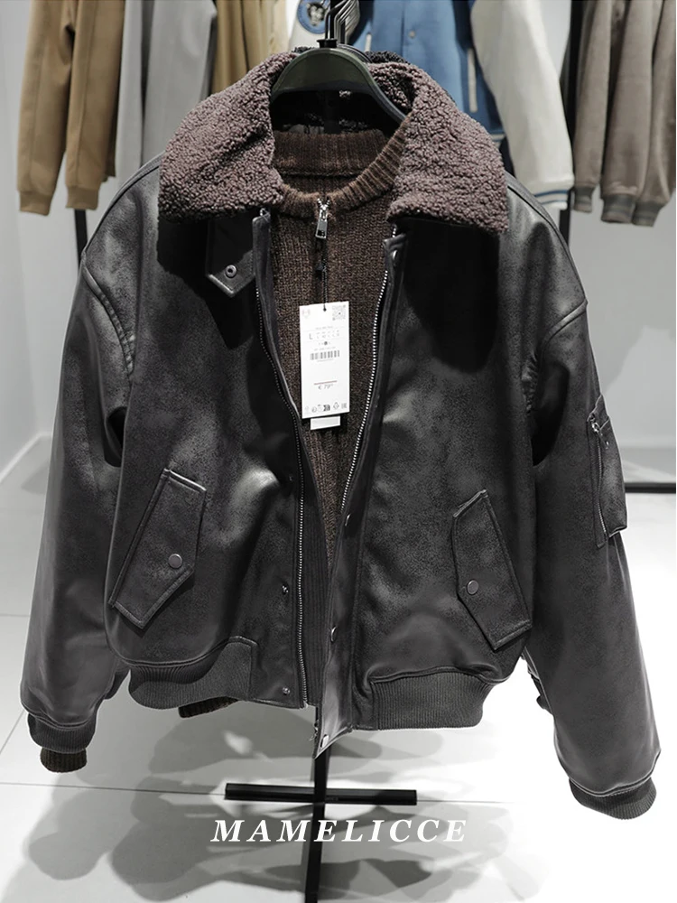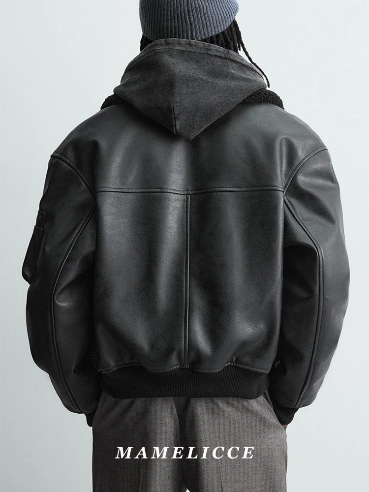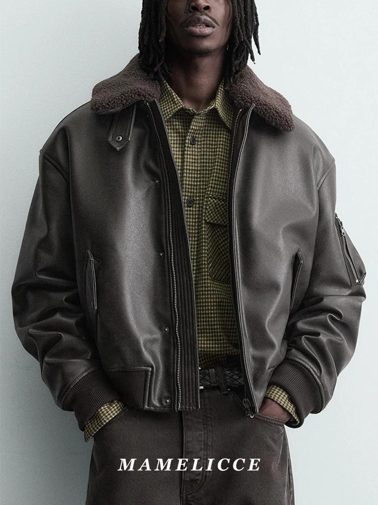 MAMELICCE Original Vintage design Removable fur collar jacket Thickened Casual coat Men’s clothing leather jackets tops
