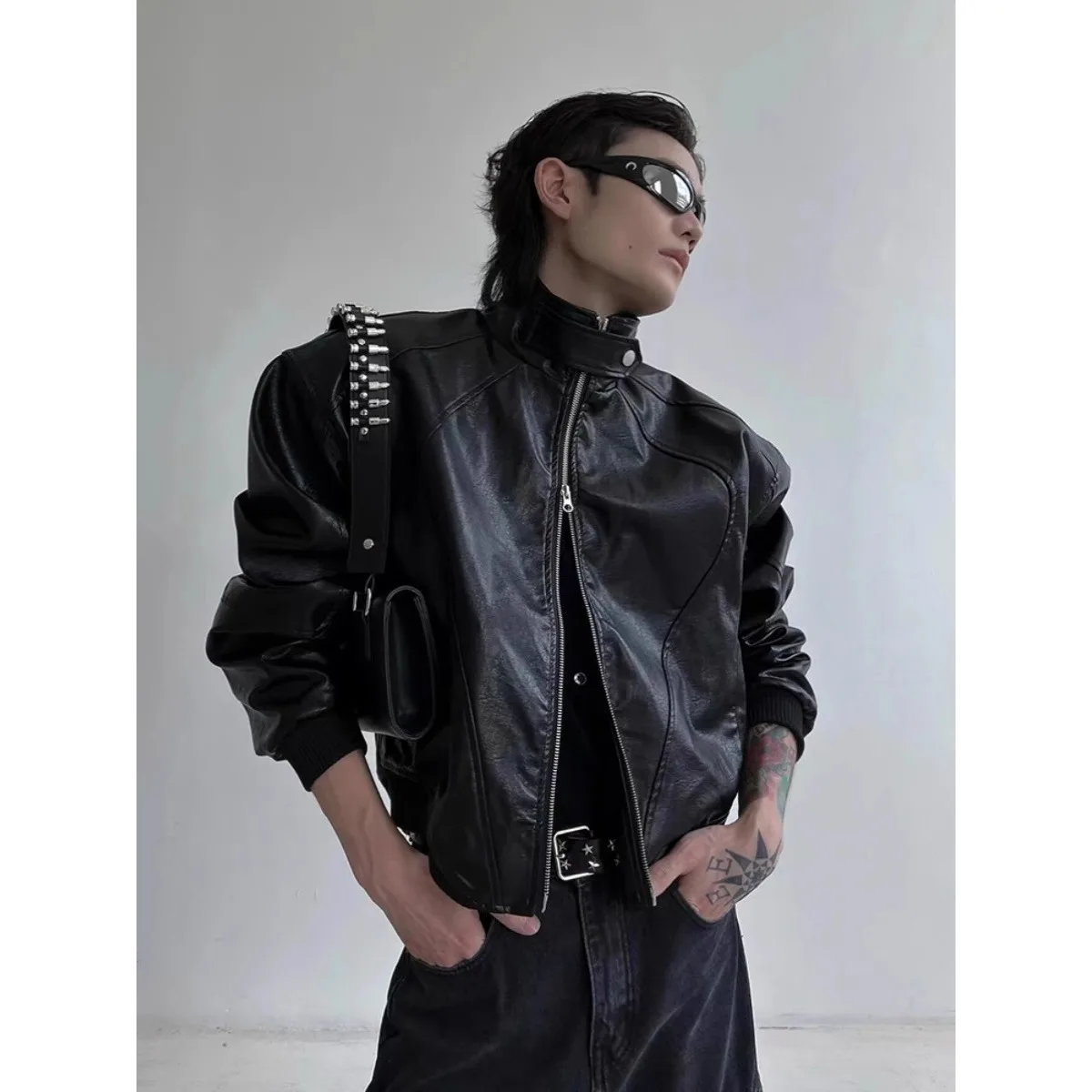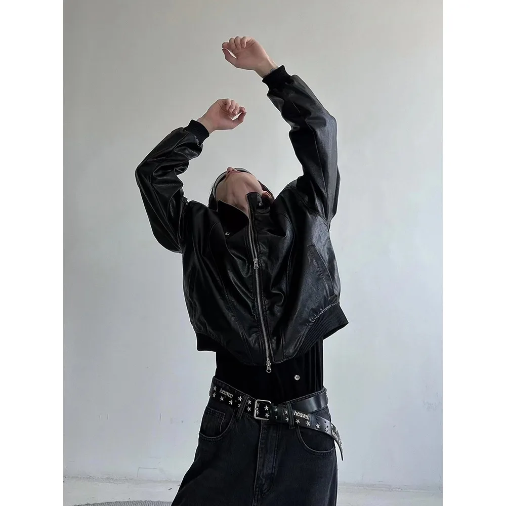 Spring and Autumn American high-end retro motorcycle leather jacket, men’s and women’s short baseball jacket, clean fit jacket,